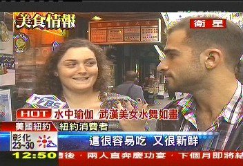 TVBS记者范琪斐:「这个绿茶绵绵冰的口味,比台湾的稍微甜一点,不过他们的水果都是新鲜的、没有处理过的,强调是健康原味,这个绿茶绵绵冰有没有可能成为纽约下一个流行的台湾小吃呢?且让我们拭目以待。」
